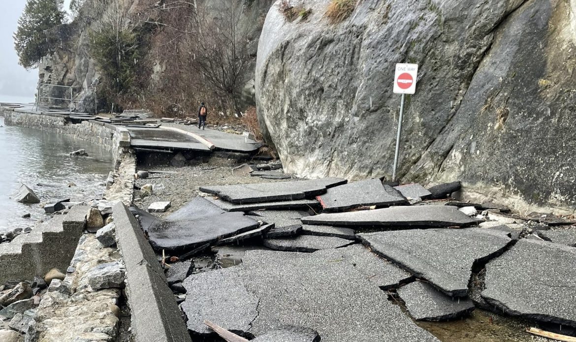 According to reports, parts of the Stanley Park and Ambleside Park seawalls were left looking like they had been hit by an earthquake after strong winds helped produce a storm surge at the same time as a seasonal king tide.