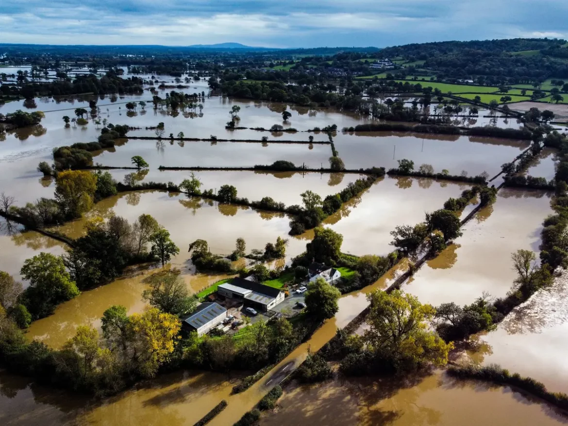 Entire fields were reportedly submerged in water after Storm Babet swept across the country, with crops ruined.